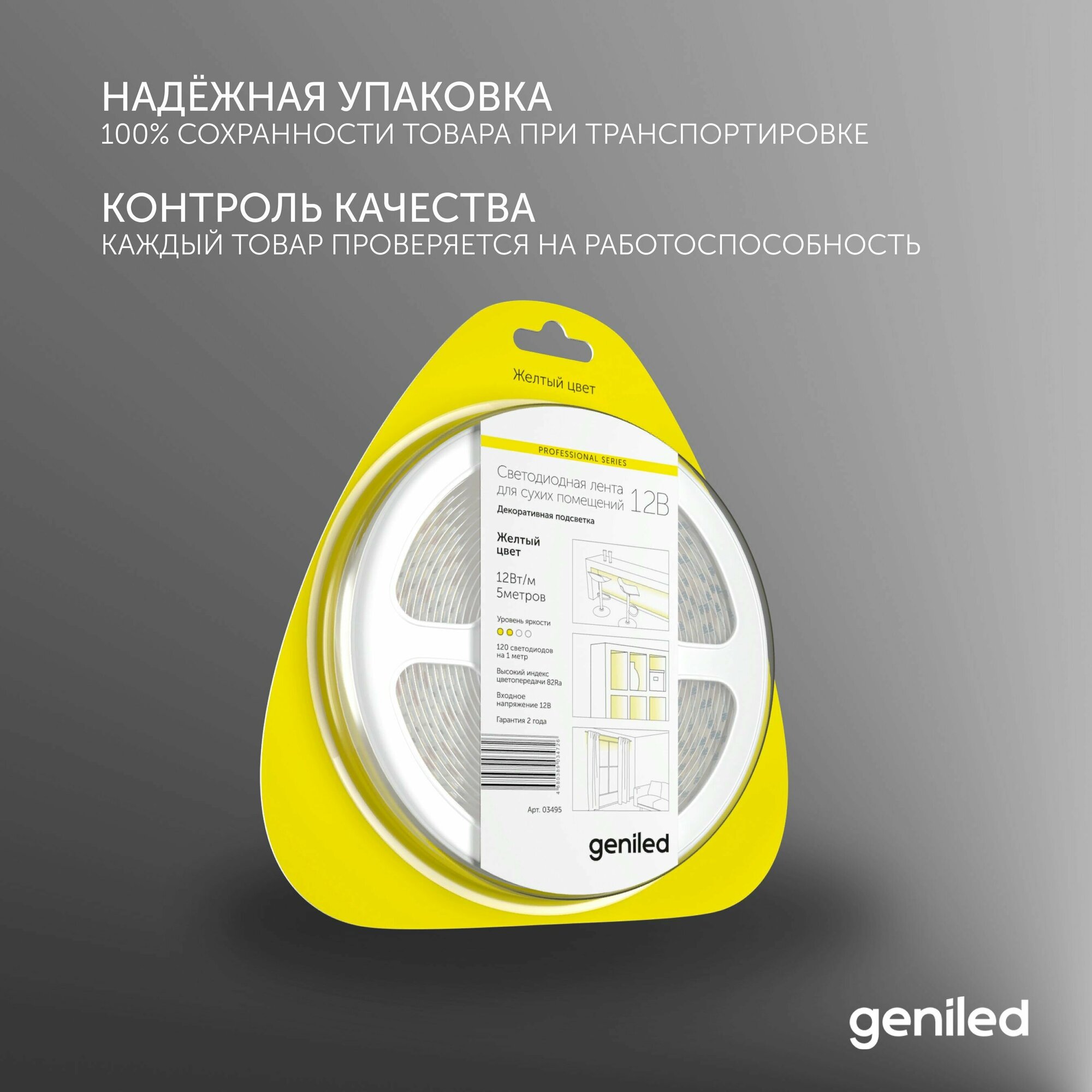 СохранитьСветодиодная лента 12 В Geniled 12 Вт/м 2835/120-IP33 8 мм желтый 5 м интересное: