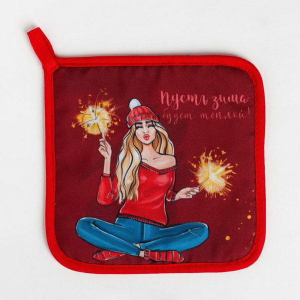 Прихватка Доляна Пусть зима будет теплой красный 17 см 17 см