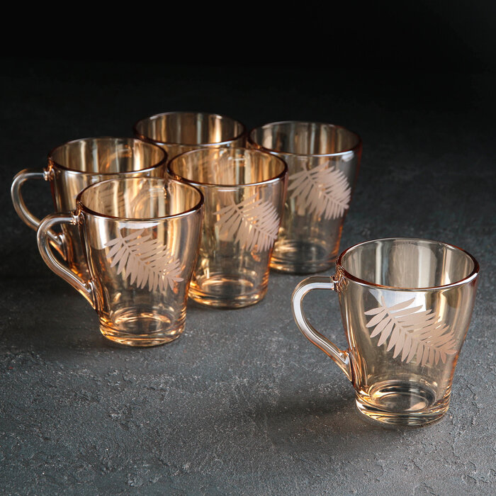 Гусь-хрустальный стекольный завод Набор кружек «Папоротник», 250 мл, 6 шт, цвет янтарь интересное: