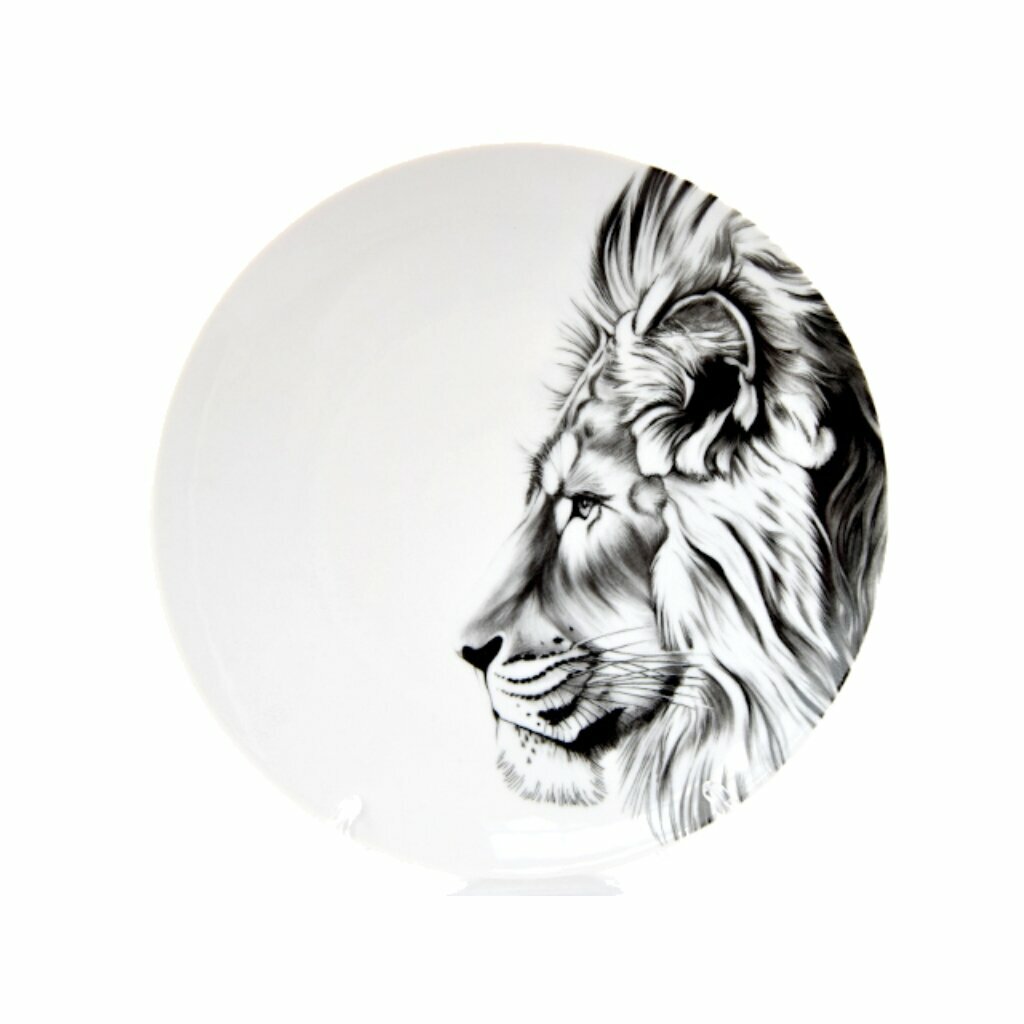 Тарелка фарфоровая "Лев", d=20 см, белая