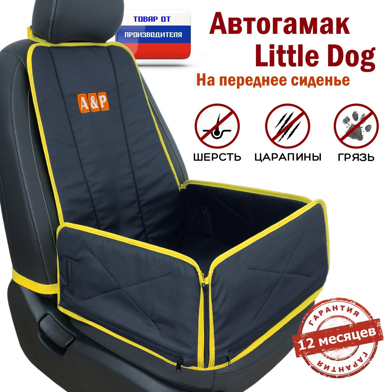 Купить Автогамак Little Dog (Литл Дог) на переднее сиденье. Цвет: черный с желтой окантовкой.