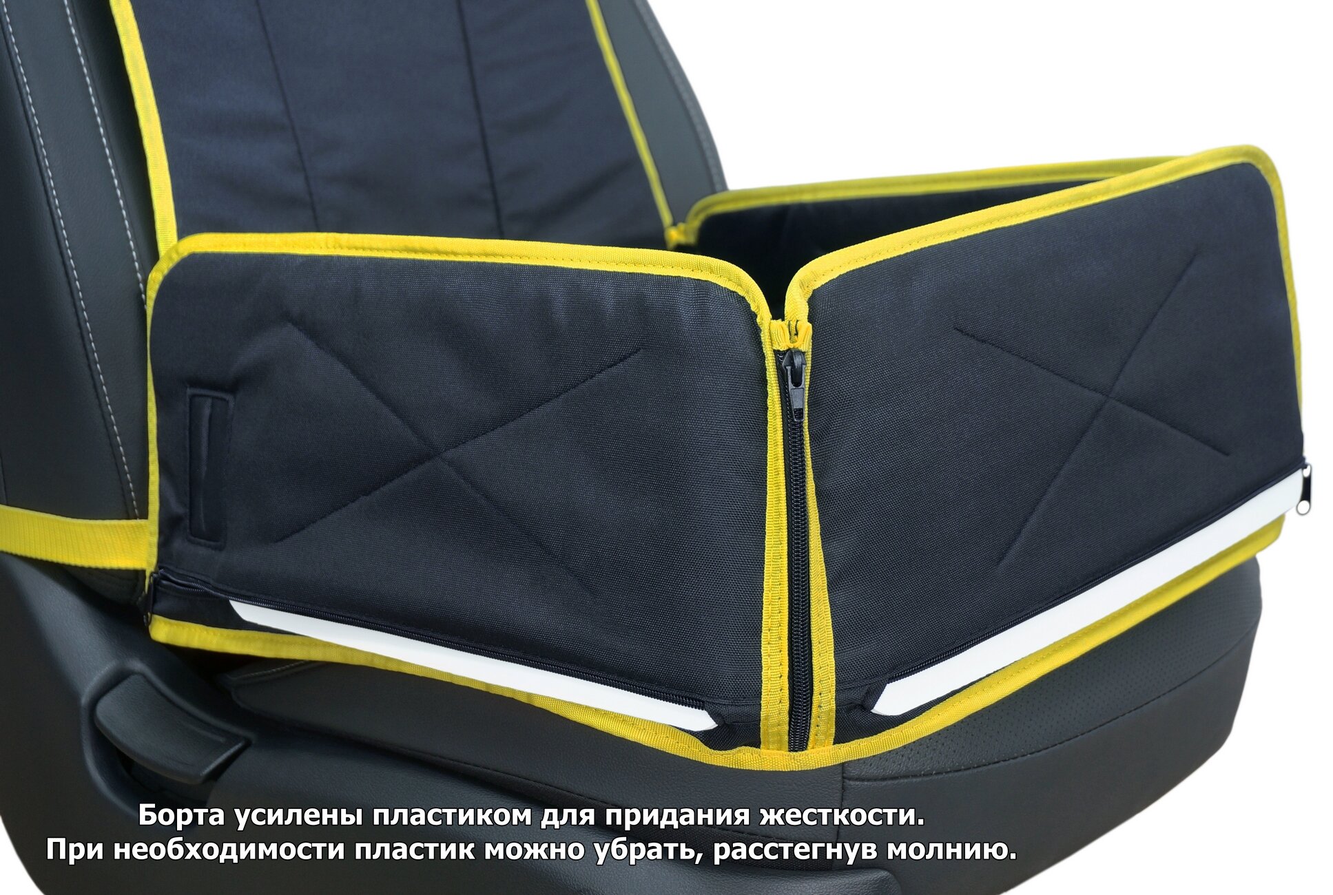 Автогамак для перевозки собак Little Dog (Литл Дог) на переднее сиденье. Цвет: черный с желтой окантовкой.