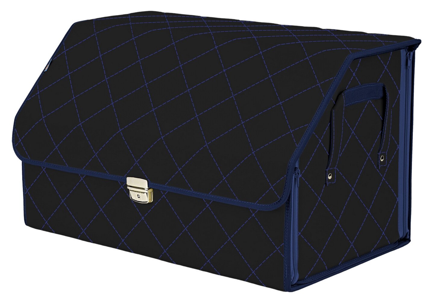 Купить Органайзер в багажник "Союз Премиум" (размер XL). Искожа. Цвет: черный с синей прострочкой ромб
