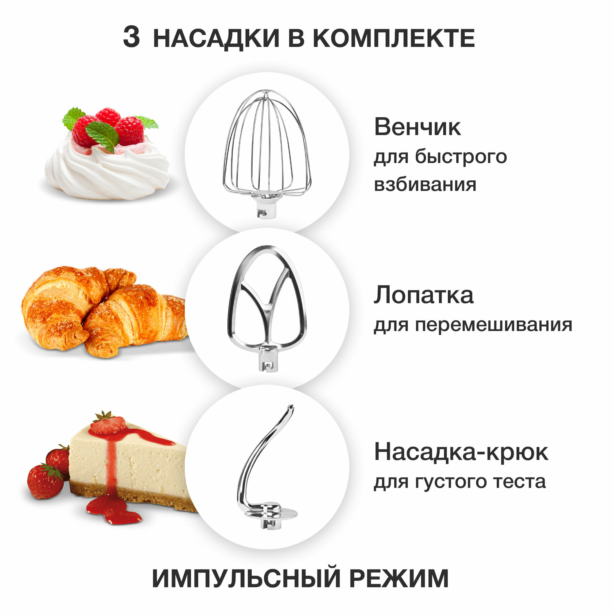 | Плюсы: | Очень удобно смешивать смеси и делать мягкое тесто |