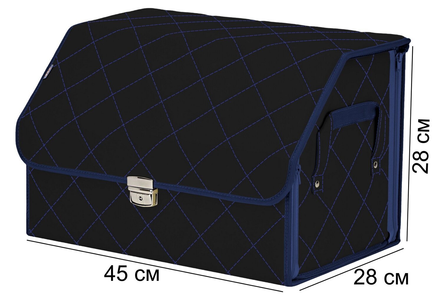 Саквояж в багажник автомобильный эко кожа черная синий ромб, объем 45 л