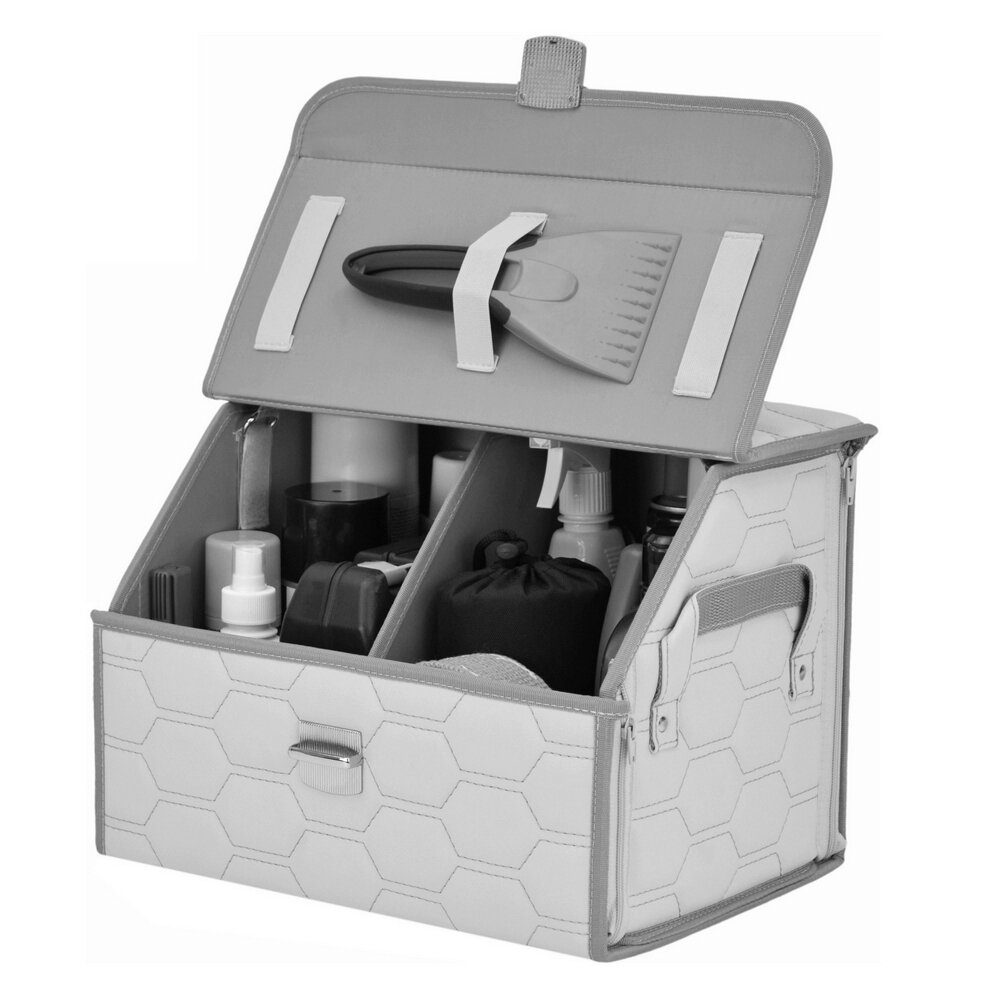 Органайзер в багажник "Союз Премиум" (размер M). Искожа. Цвет: черный с серой прострочкой ромб.