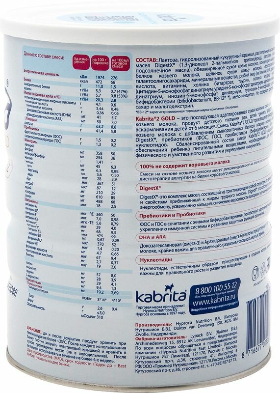 Купить Сухая молочная смесь KABRITA Gold 2 на основе козьего молока, 800г