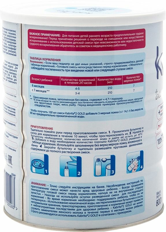 Смесь Kabrita 2 GOLD для комфортного пищеварения, 6-12 месяцев, 800 г, 4 банки