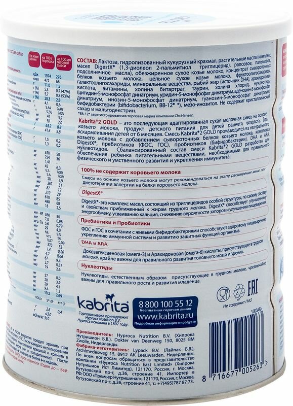 Смесь Kabrita 2 GOLD для комфортного пищеварения, 6-12 месяцев, 800 г, 6 банок