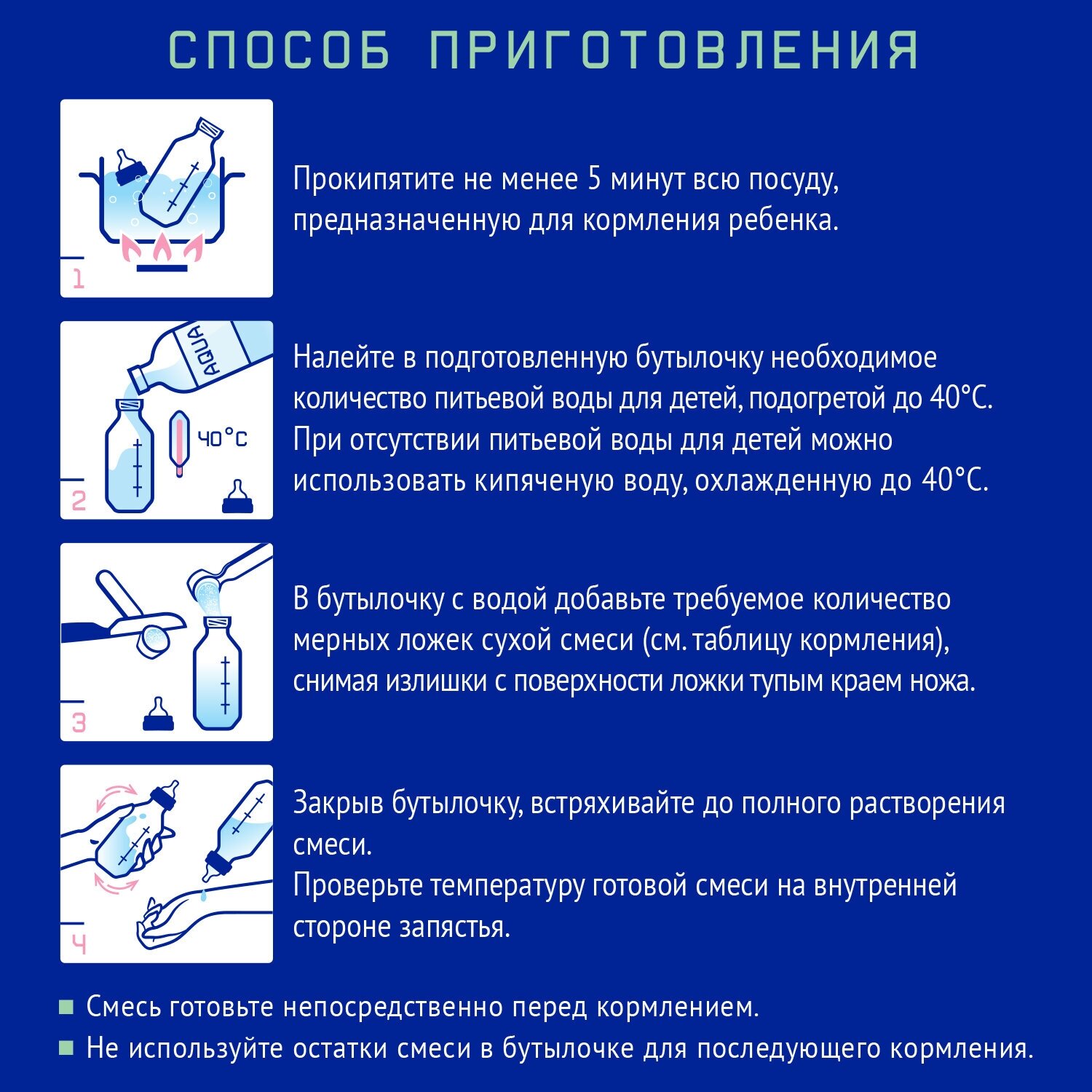 | Минусы: | Не нравится, что смесь поставляется в коробках, неудобно класть в бутылочку |
