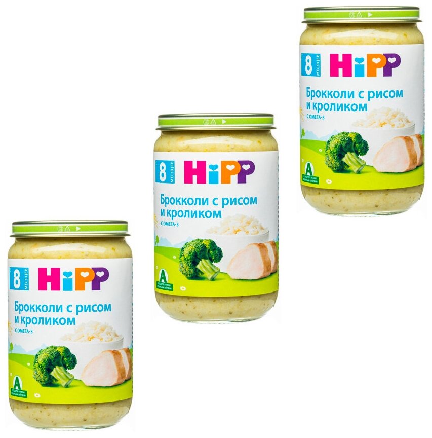 Купить Пюре HiPP органическое Брокколи с рисом и кроликом с 8 месяцев, 220 гр., 3 шт.