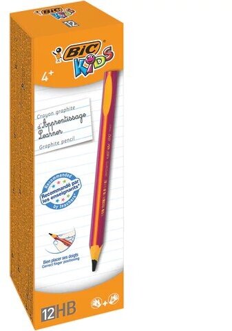 Карандаш чернографитный утолщенный BIC, 1 шт., Kids Evolution, HB, трехгранный, корпус розовый с желтым, заточенный, 919263, (12 шт.)