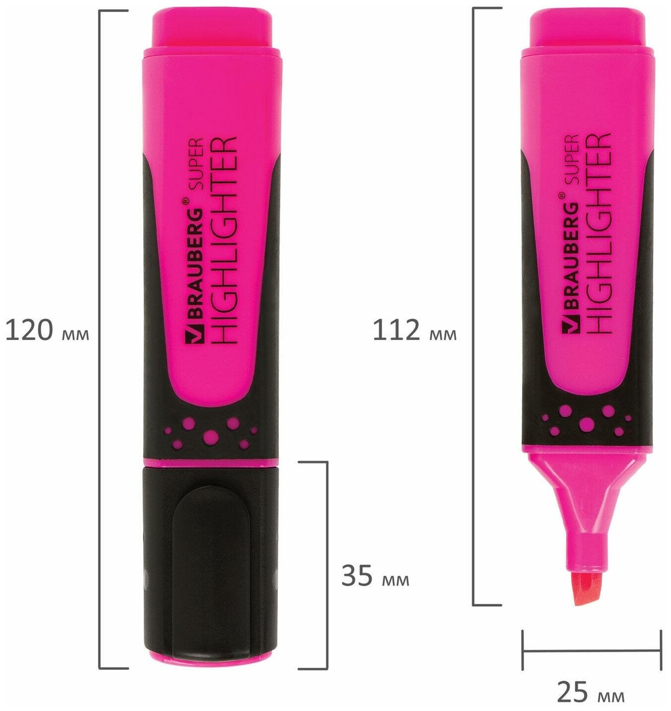 Текстовыделитель BRAUBERG "SUPER", розовый, прорезиненный корпус, линия 1-5 мм, 151740