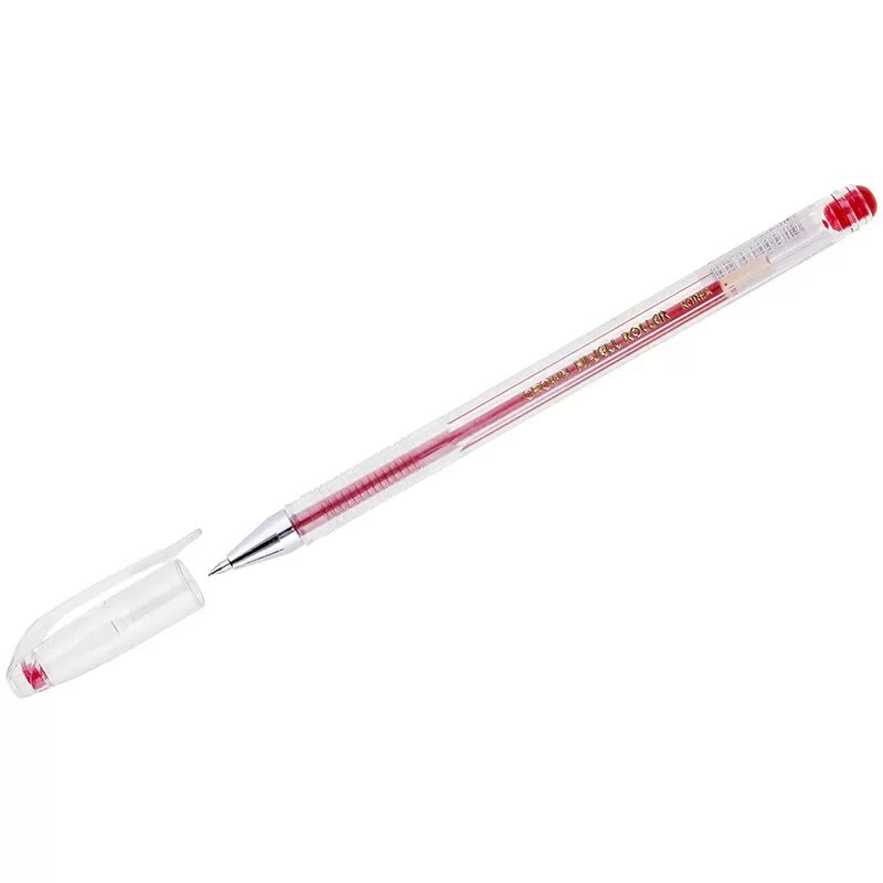 Ручка гелевая CROWN «Hi-Jell», красная, корпус прозрачный, узел 0,5 мм, линия письма 0,35 мм, HJR-500B