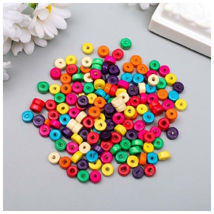 Купить Бусины для творчества дерево "Плоские круглые разноцветные" набор 20 гр 0,6х0,3 см