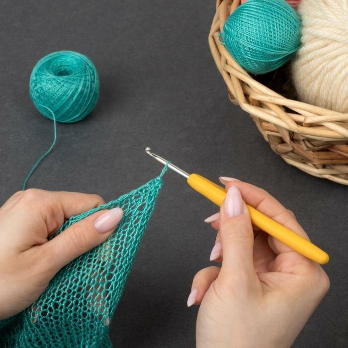 Купить Арт Узор Крючок для вязания, с силиконовой ручкой, d 3,5 мм, 14 см, цвет жёлтый