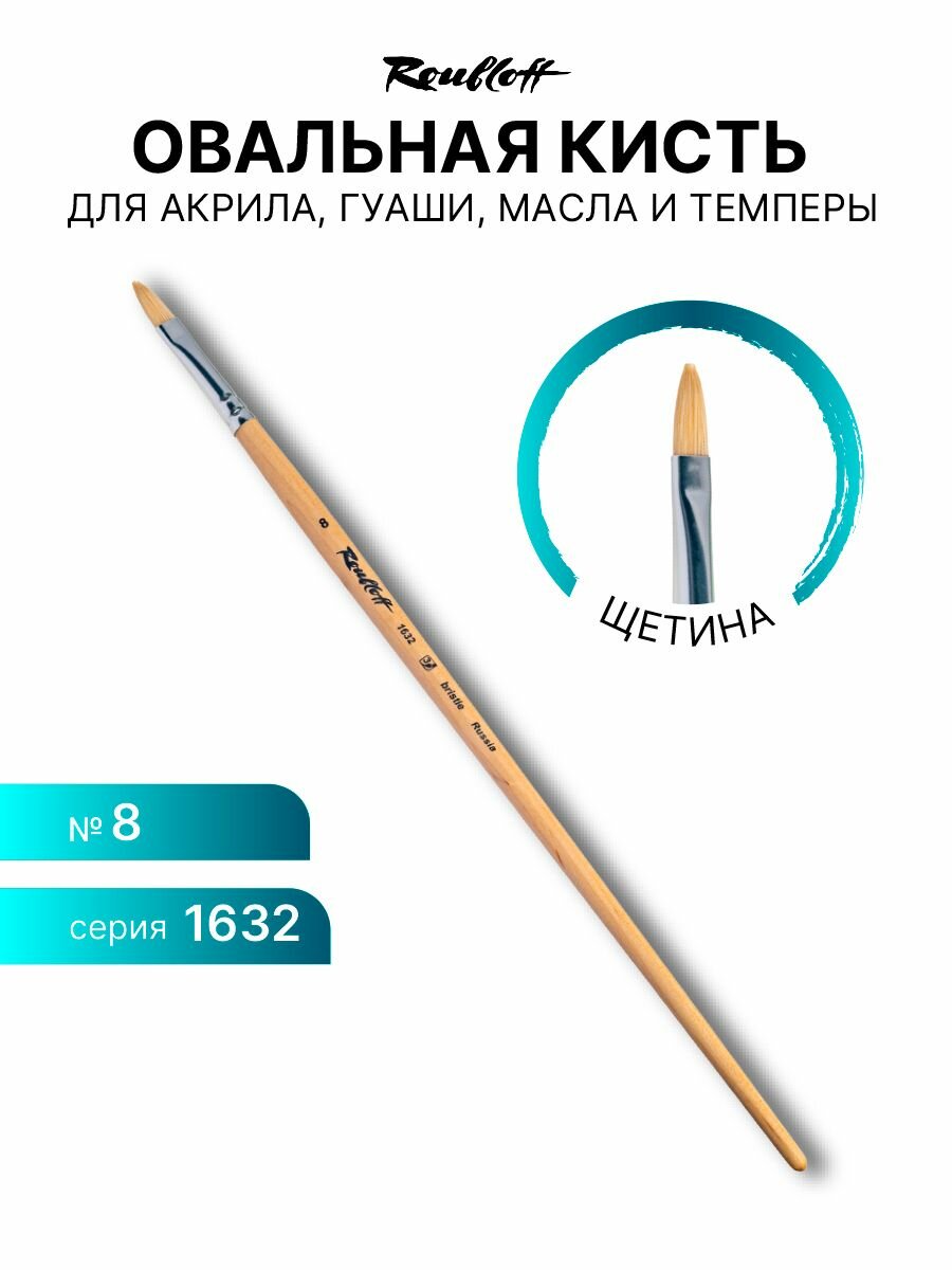 Купить Roubloff Кисть Щетина овальная, Roubloff серия 1632 № 8, ручка длинная пропитана лаком, белая обойма