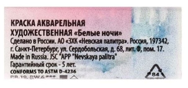 Краска Акварельная Художественная "Белые Ночи" 2,5 мл. Фиолетовый хинакридон