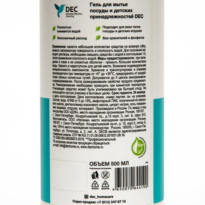 Гель для мытья посуды и детских принадлежностей, "DEC", 500 мл./В упаковке шт: 1 интересное: