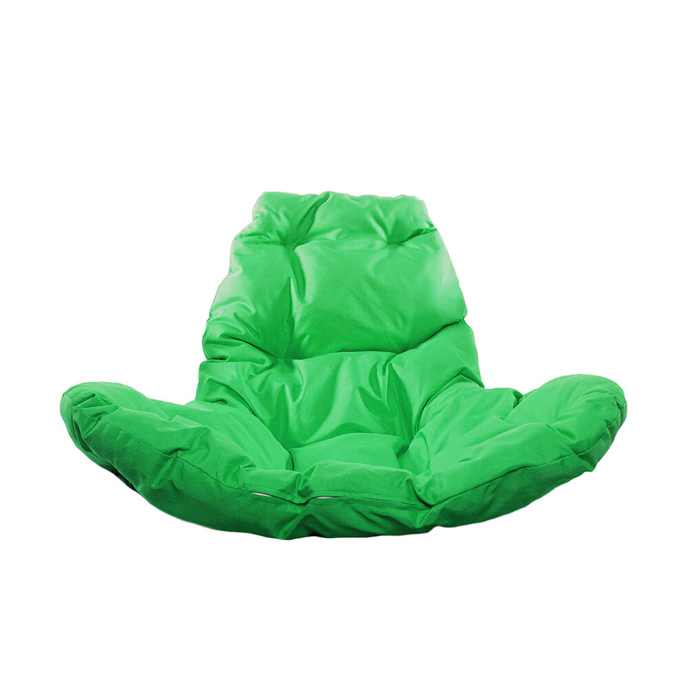 Подвесное кресло овал с ротангом коричневое, зелёная подушка