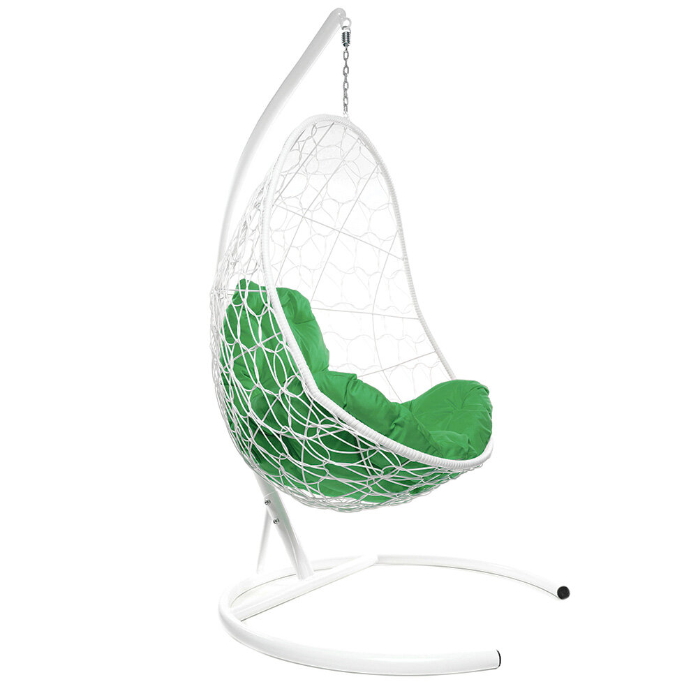 Подвесное кресло M-Group "Овал" с ротангом Белый/ подушка Зеленая