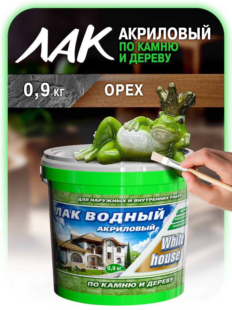 Купить ЛАК водный ПО дереву И камню WHITE HOUSE акриловый Орех 0,9кг
