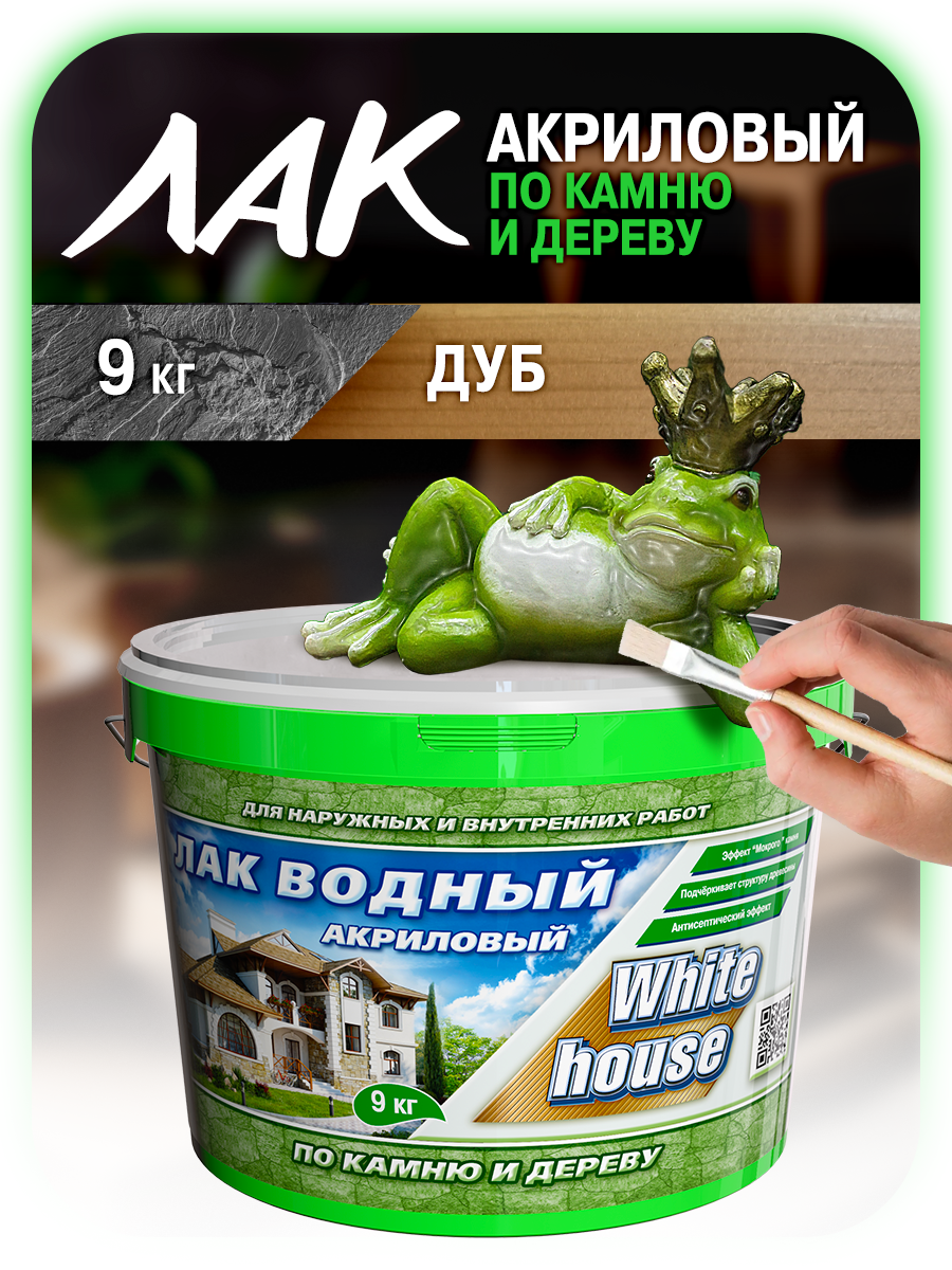 Влагостойкий лак для стен, камню и дереву White House, акриловая быстросохнущая краска без запаха, бесцветный 9 кг