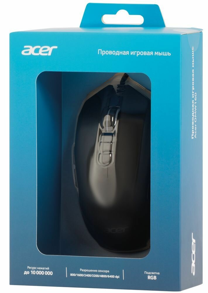 Игровая мышь Acer OMW160 черный (6400dpi) USB (8 кнопок)