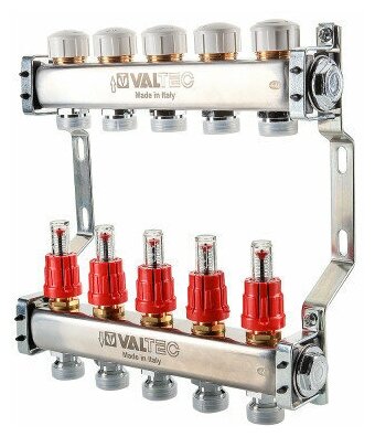 Коллектор VALTEC с расходомерами и регулирующими клапанами, из нержавеющей стали, 1", 6 выходов. VTc.584.EMNX