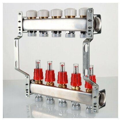 Коллекторный блок из нержавеющей стали 1" с регулирующими и балансировочными клапанами / 5 выходов Valfex арт. VF.582.0605