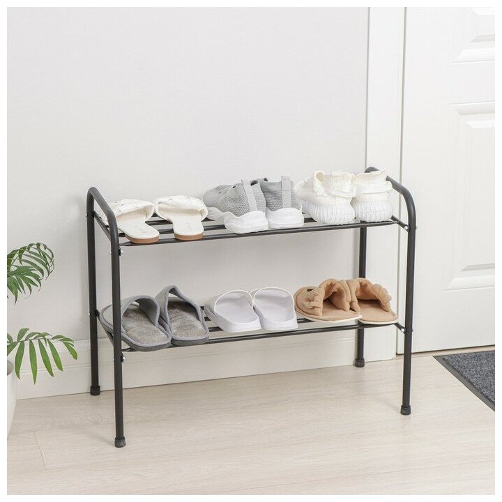 Купить Подставка для обуви, 2 яруса, 65×32×48,5 см, цвет чёрный