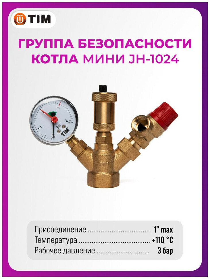 Группа безопасности для котла мини эконом, без накидных гаек - 3 bar (24) TIM арт. JH1024-3std интересное: