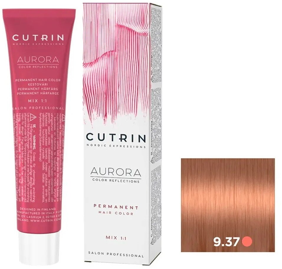 Купить CUTRIN Крем-краска для волос AURORA COLOR REFLECTION 9.37 Очень светлое золотое дерево / Стойкая крем-краска для волос Aurora Color Reflection 60 мл