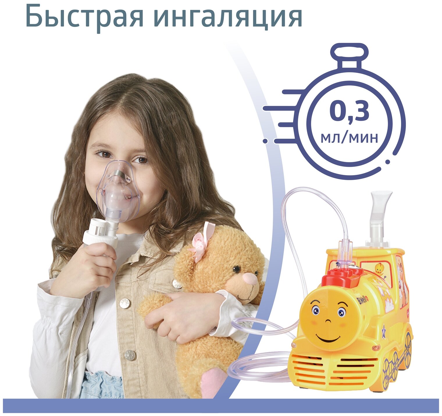 B.Well PRO-115 / Би Велл - компрессорный ингалятор, детский, Паровозик