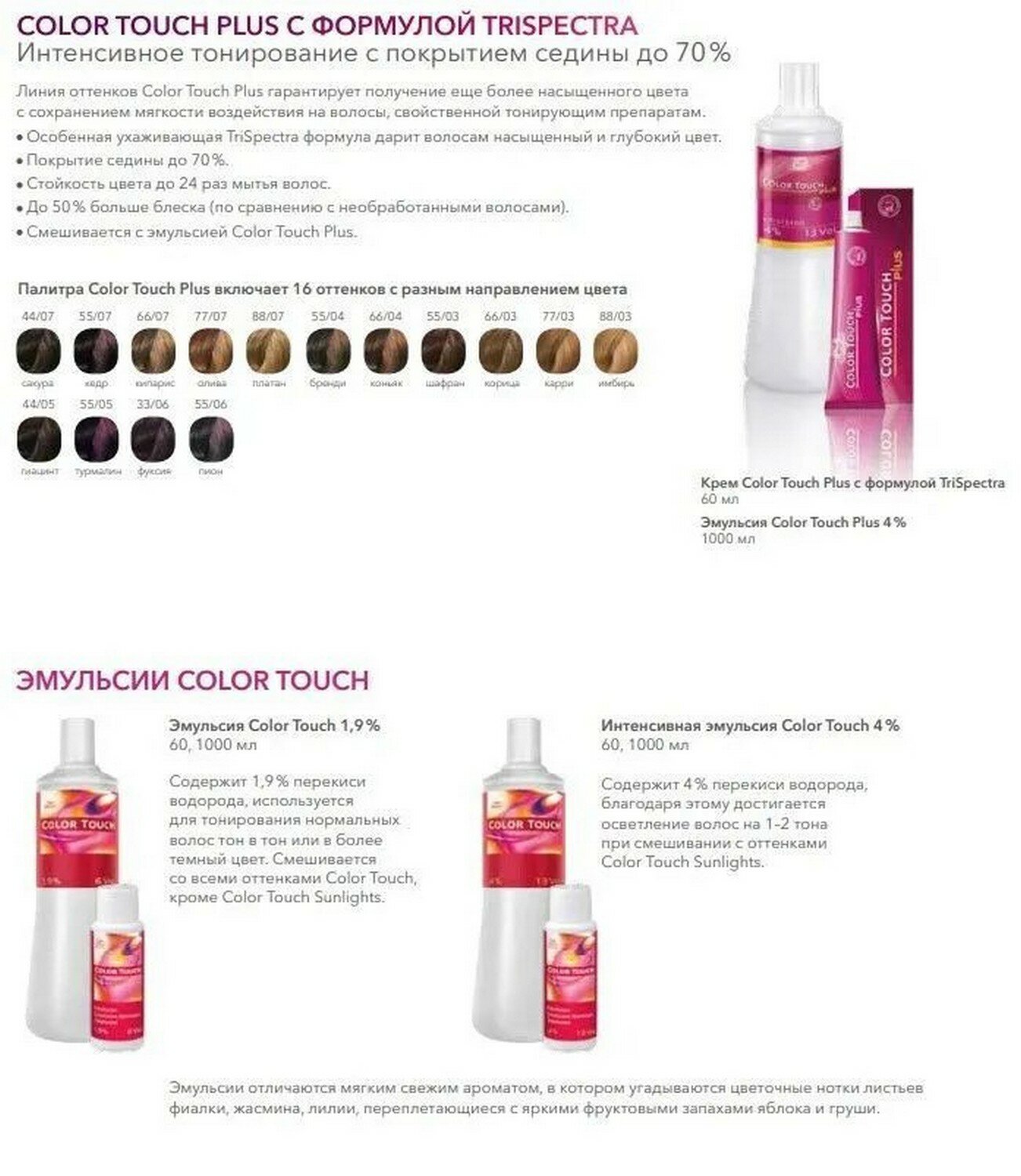 | Плюсы: | Хороший проявитель, как и вся линейка Wella Color Touch. Знакомы с ней уже 3 года. Не портит волосы, дает хорошие насыщенные цвета при покраске, смягчает локоны. |