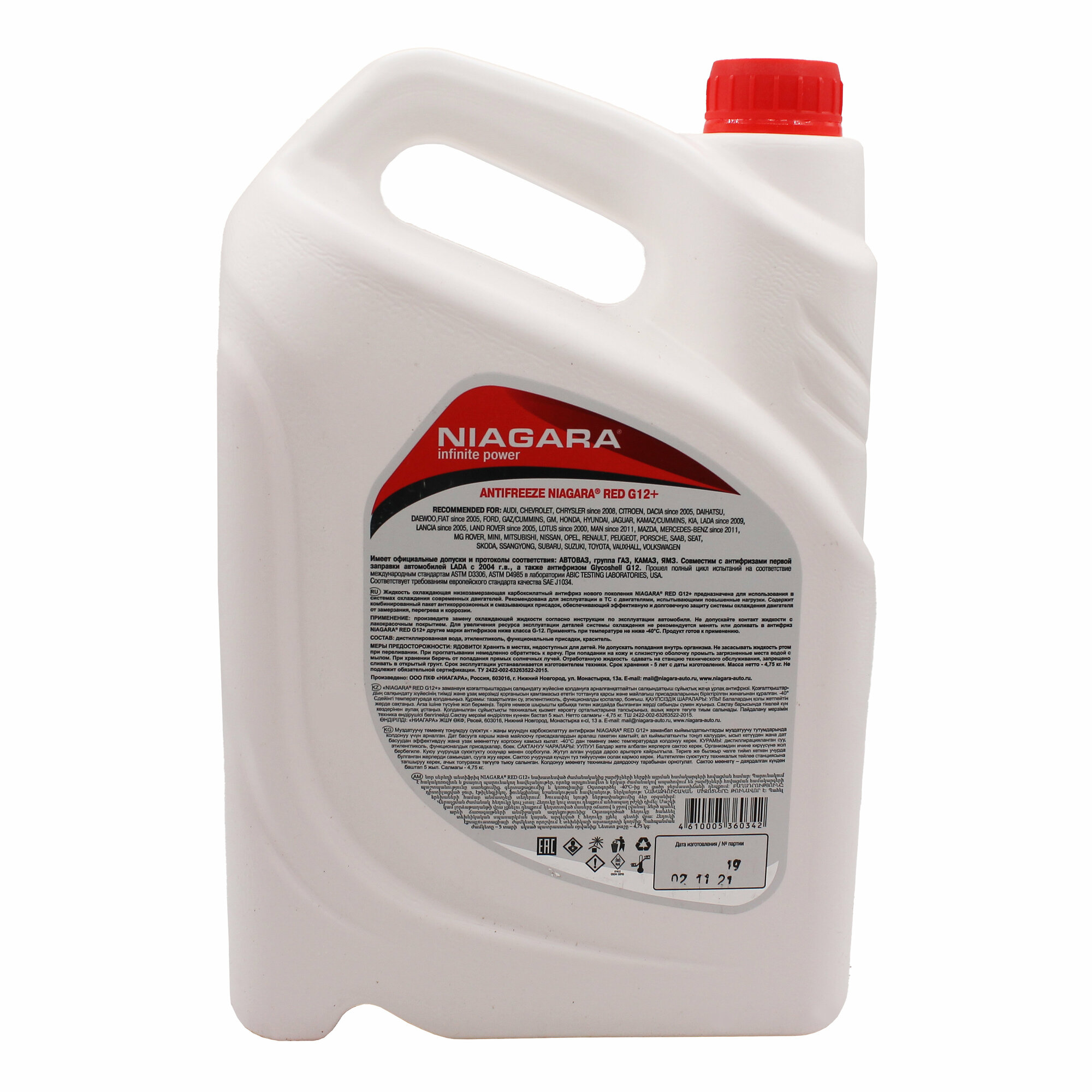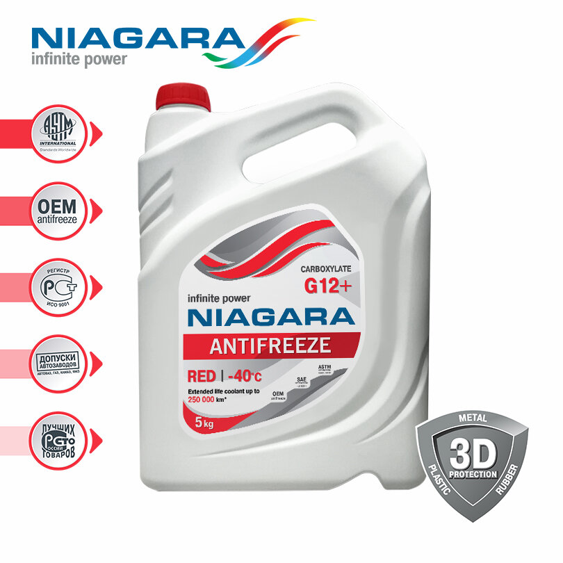 СохранитьNIAGARA 096836 5KG_антифриз G12+ ! 5kg, красный карбоксилатный готовый -40°C\ интересное: