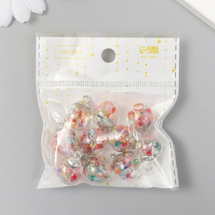 Арт Узор Подвеска декоративная для творчества стекло "Шар - камешки"разноцветная d=1,6см набор 10 шт