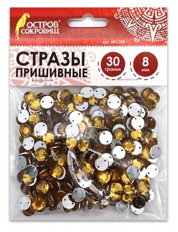 Стразы для творчества круглые, золото, 8мм, 30г, остров сокровищ, 661204 4606224185385