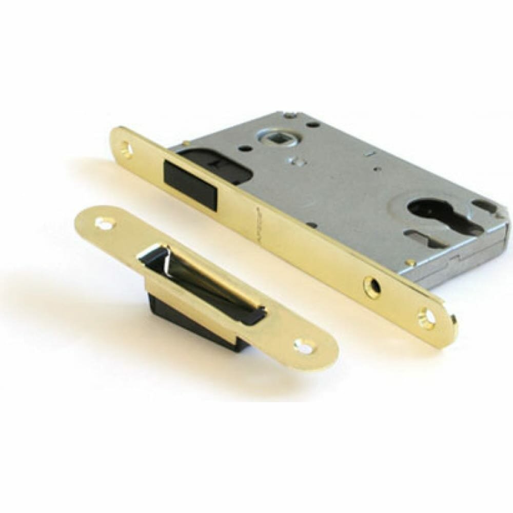 Замок врезной Apecs, 5300-M-G, 15736, магнит, со смещенным ригелем, без ручек и сердцевины, золото