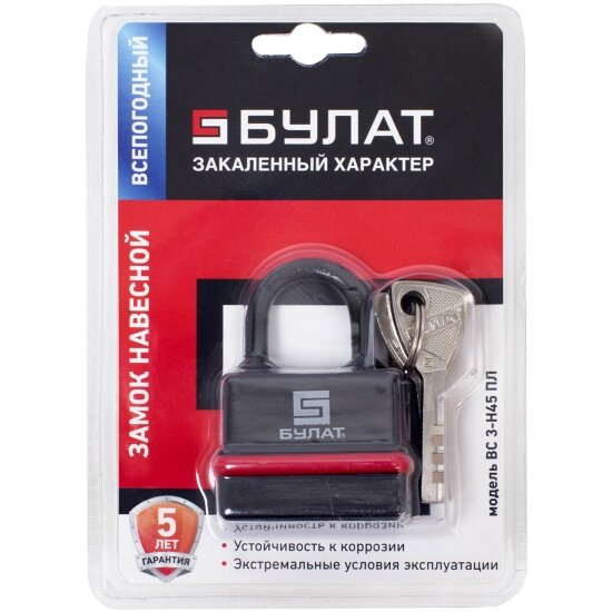 Навесной замок булат ВС 3-Н45 ПЛ (всепогодный; 5 ключей; 6 мм) 13981