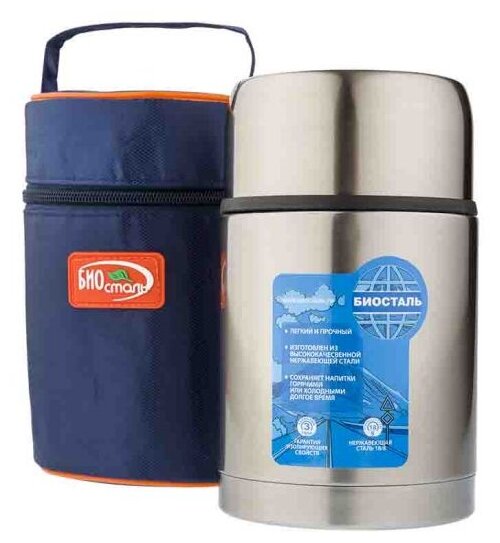 Термос BIOSTAL 1200NRP с широким горлом, суповой, с термочехлом, 1,2 л.