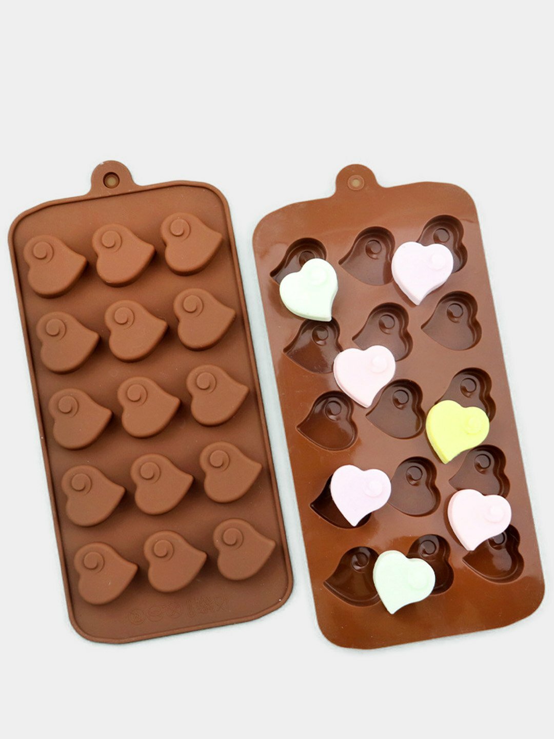 Форма для льда и кондитерских украшений Доляна «Сердцеедка», 21,5?11?1,5 см, 15 ячеек, цвет шоколадный