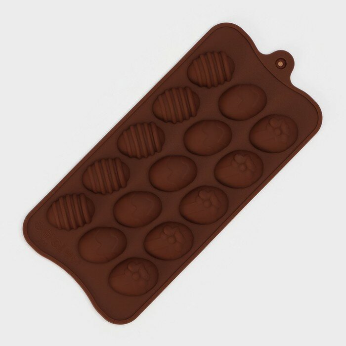 Купить Форма для конфет, льда и и кондитерских украшений «Пасхальные яйца», 22×10,5 см, 15 ячеек (3,2×2,5 см), цвет шоколадный