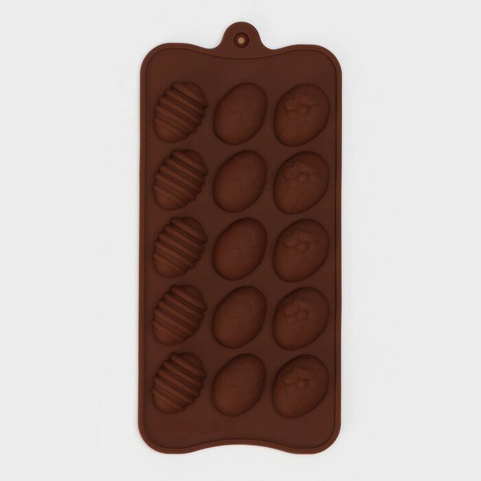 Форма силиконовая для льда и кондитерских украшений Доляна «Пасхальные яйца», 22×10,5 см, 15 ячеек (3,2×2,5 см), цвет шоколадный