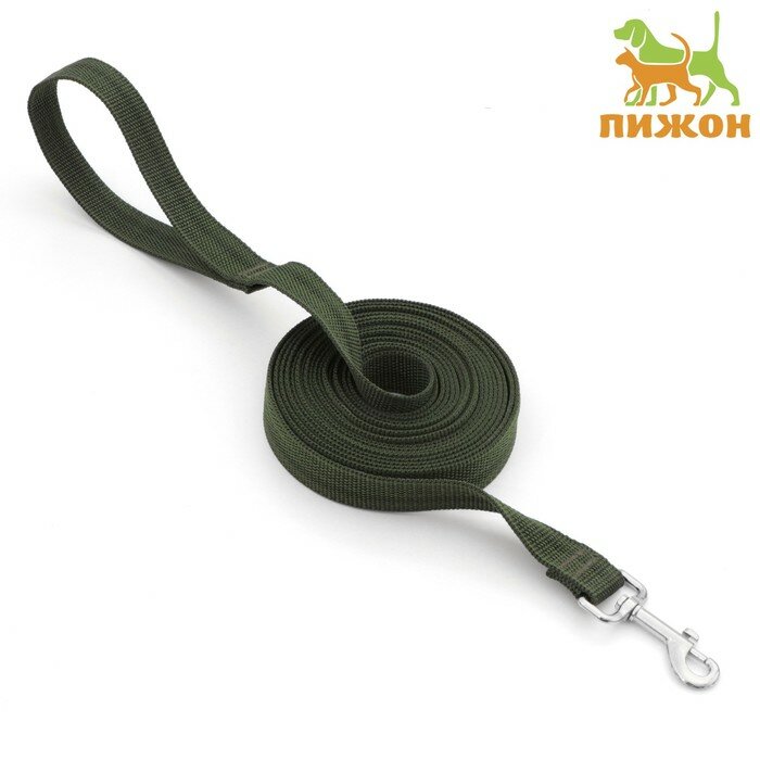 Поводок брезентовый для собак 7 м х 3,5 см, тёмно-зелёный