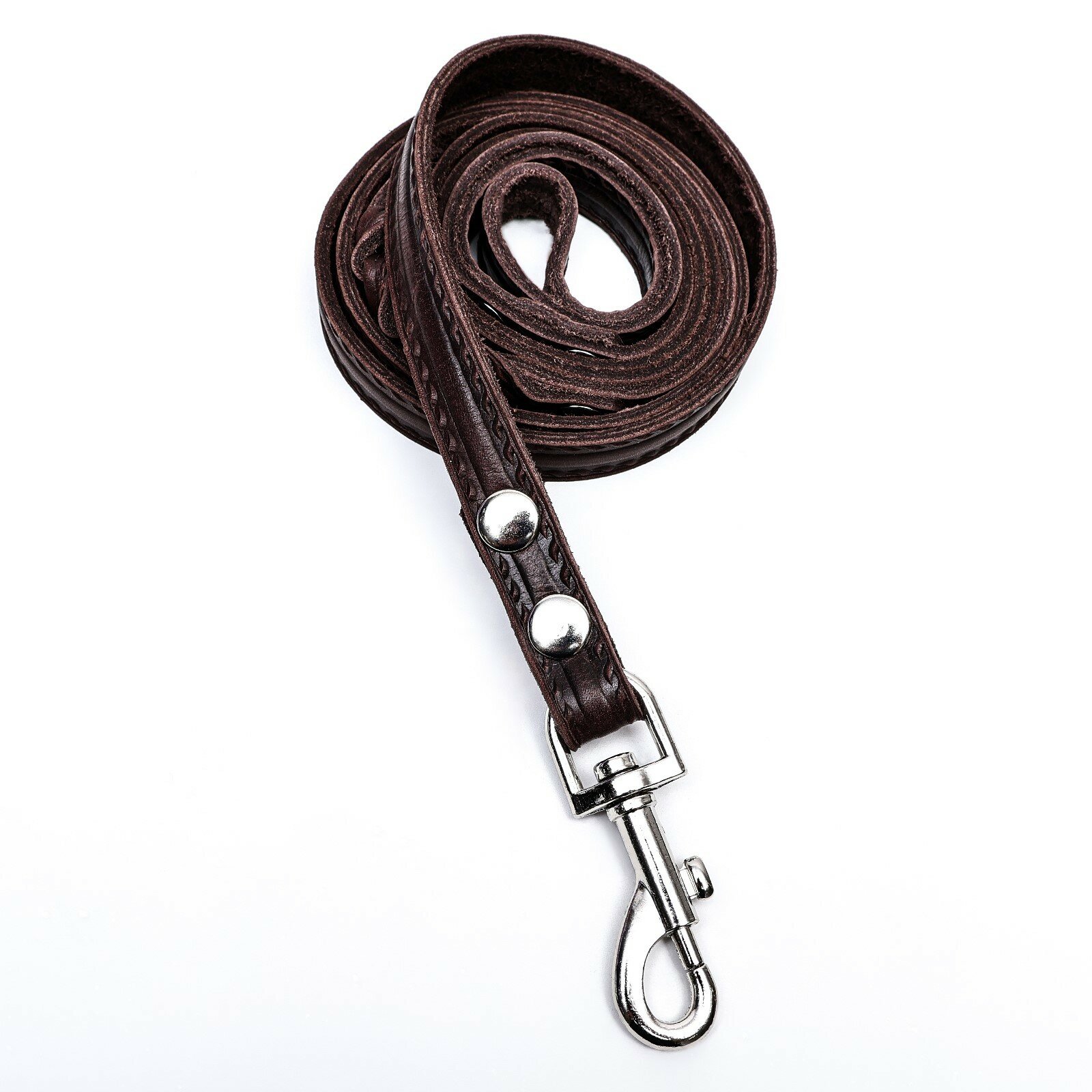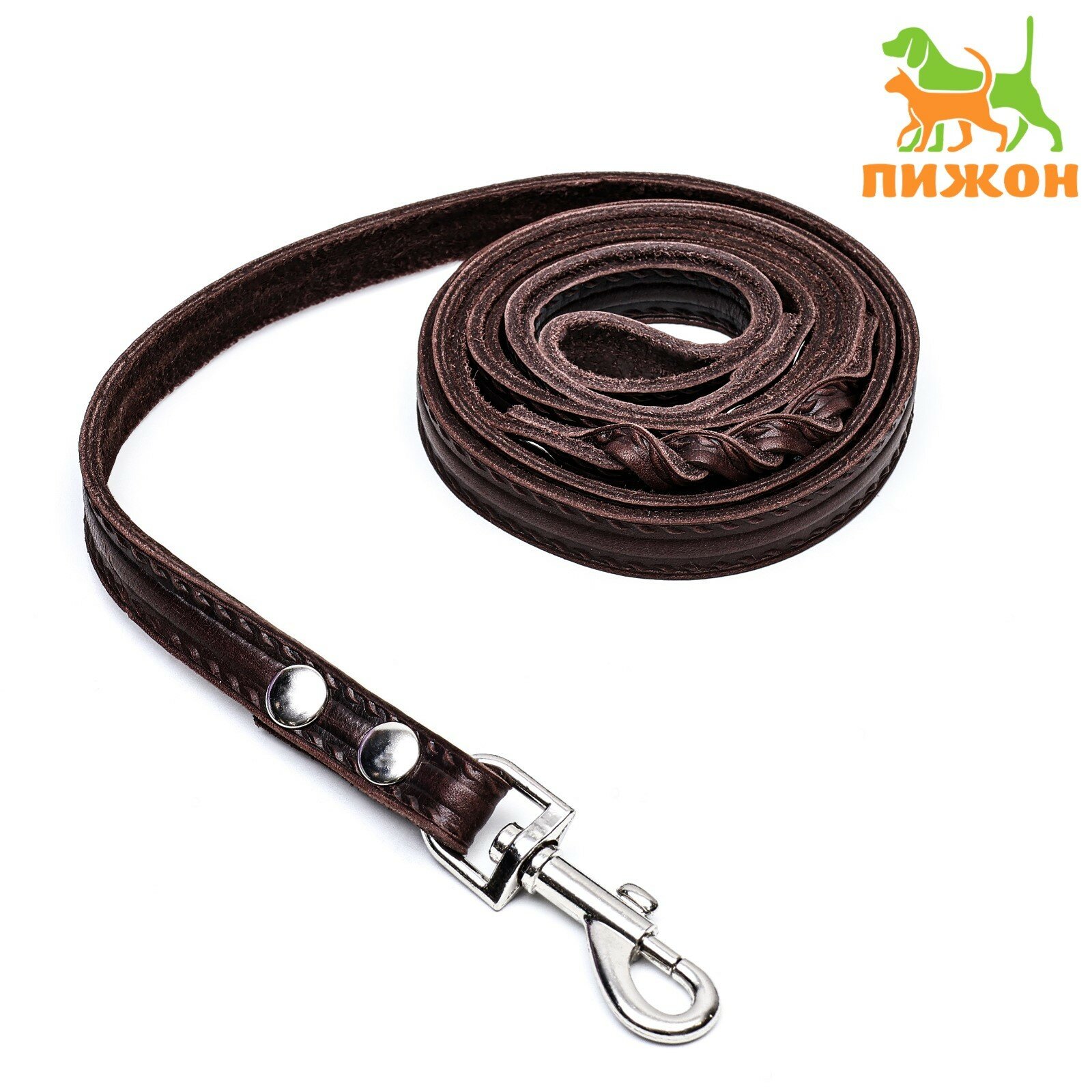 Поводок кожаный однослойный тиснёный, удлиненный, 2 м х 1,6 см коричневый интересное: