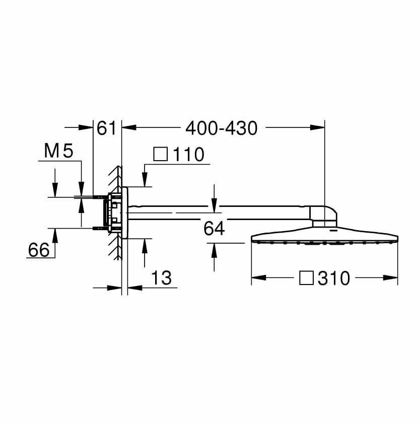 Верхний душ Grohe Rainshower 310 SmartActive Cube с душевым кронштейном