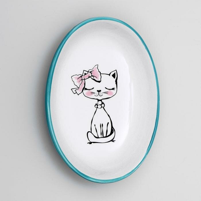 Блюдце керамическое «Милая киса», голубая, 15,7 х 11,3 х 3,8 см, 400 мл интересное: