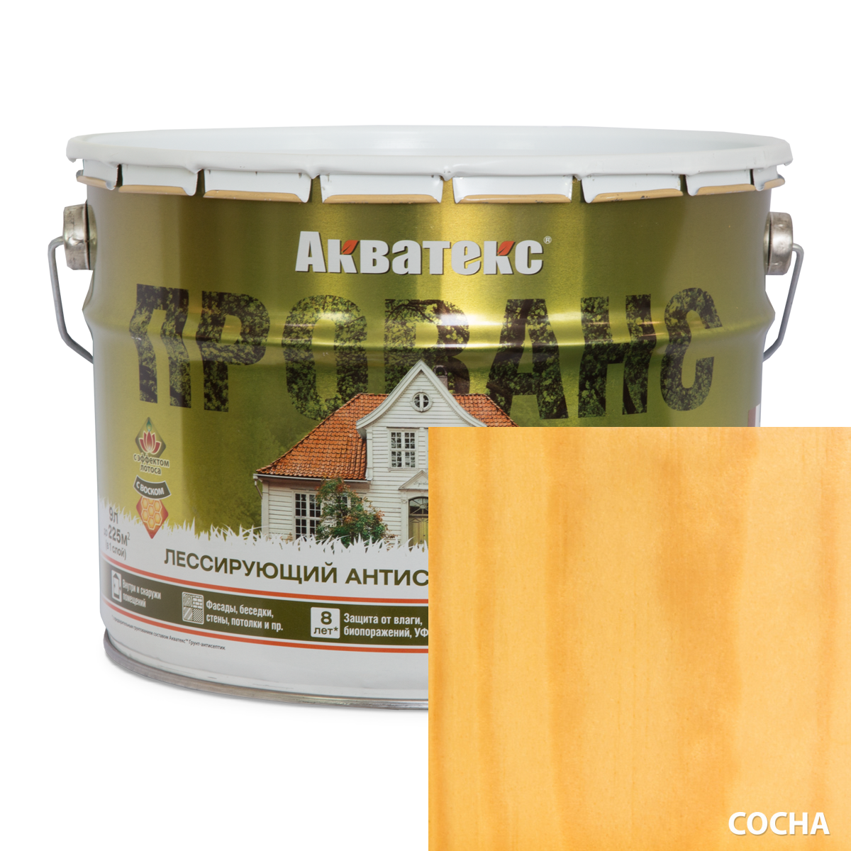 Антисептик для дерева акватекс прованс лессирующий, полуматовый 9л сосна