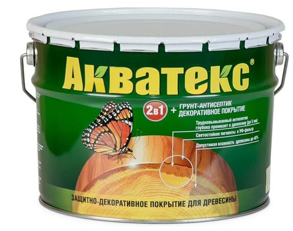 Защитно-декоративное Акватекс покрытие для древесины, пропитка по дереву, 2в1, сосна, 9л